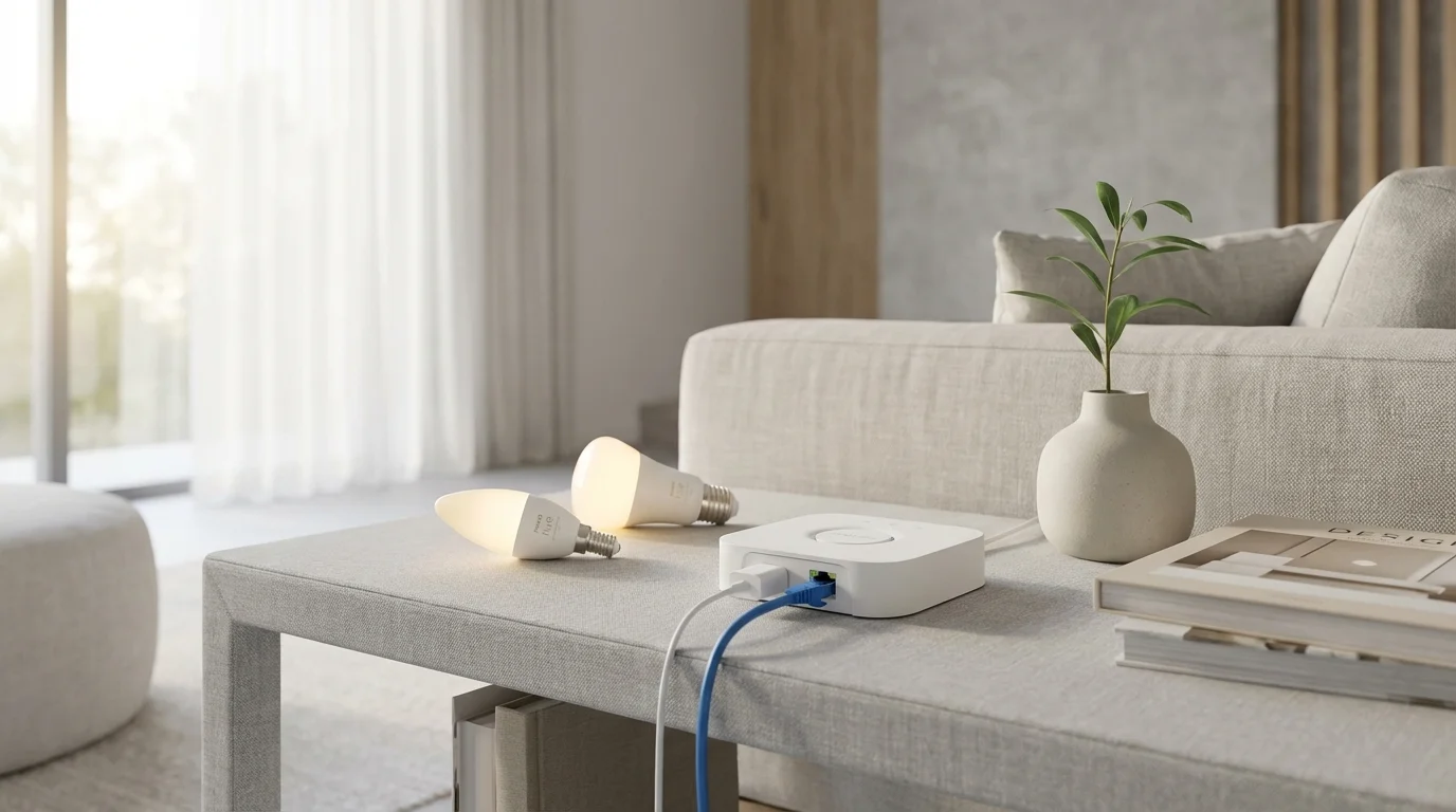 Nous avons remplacé notre ancien Hue Bridge V2 par le V3 pendant deux mois, en le connectant à 47 accessoires Hue (ampoules, bandeaux LED, capteurs, interrupteurs). Voici notre avis complet sur ce nouveau cerveau de l'éclairage connecté.